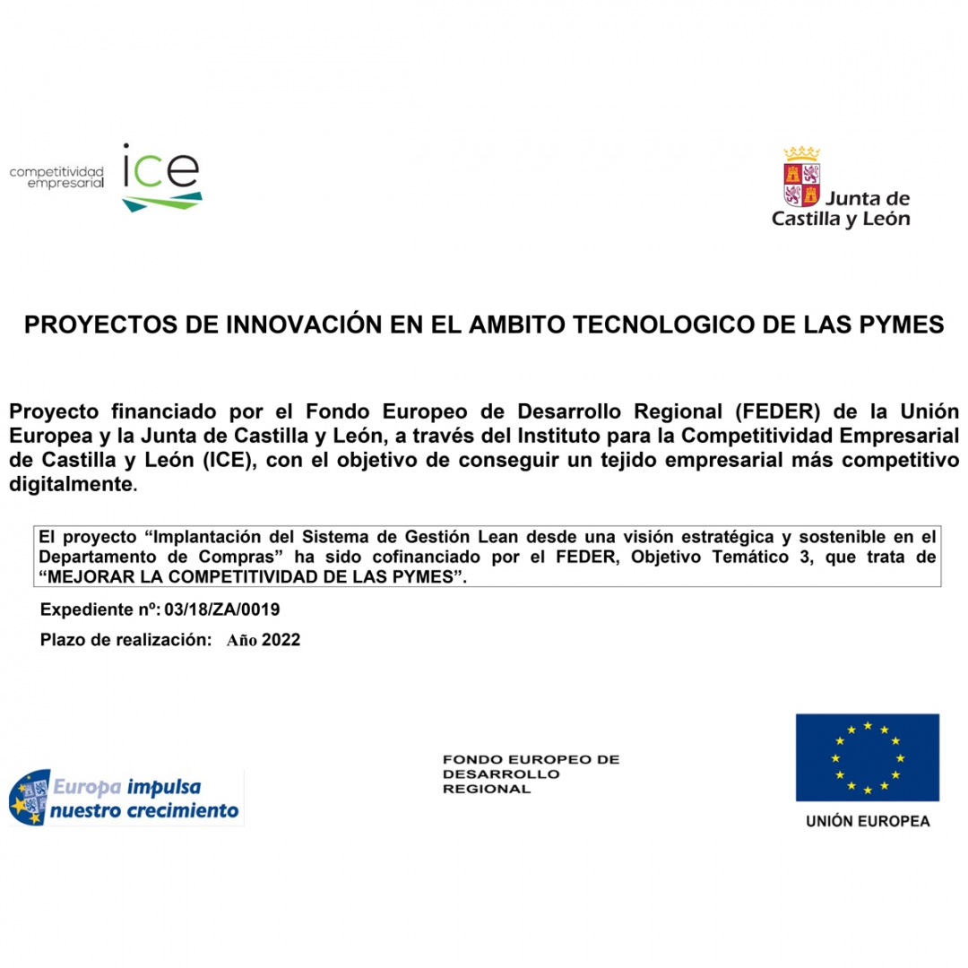El proyecto “Implantación del Sistema de Gestión Lean desde una visión estratégica y sostenible en el Departamento de Compras” ha sido cofinanciado por el FEDER, Objetivo Temático 3, que trata de “MEJORAR LA COMPETITIVIDAD DE LAS PYMES”.