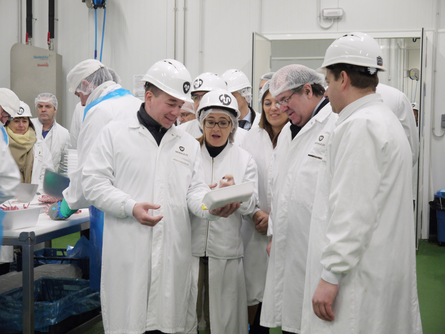 Acompañado de los propietarios de Moralejo Selección, Enrique y Mario Oliveira, el presidente de la Junta recorrió las instalaciones de esta industria joven especializada en el sector del ovino. La especialización, la innovación y la apertura a nuevos mercados han sido claves en el desarrollo de esta empresa zamorana, que en el último ejercicio ha realizado una inversión de 3 MM € para poner en marcha una planta de producción de 5.200 metros cuadrados.