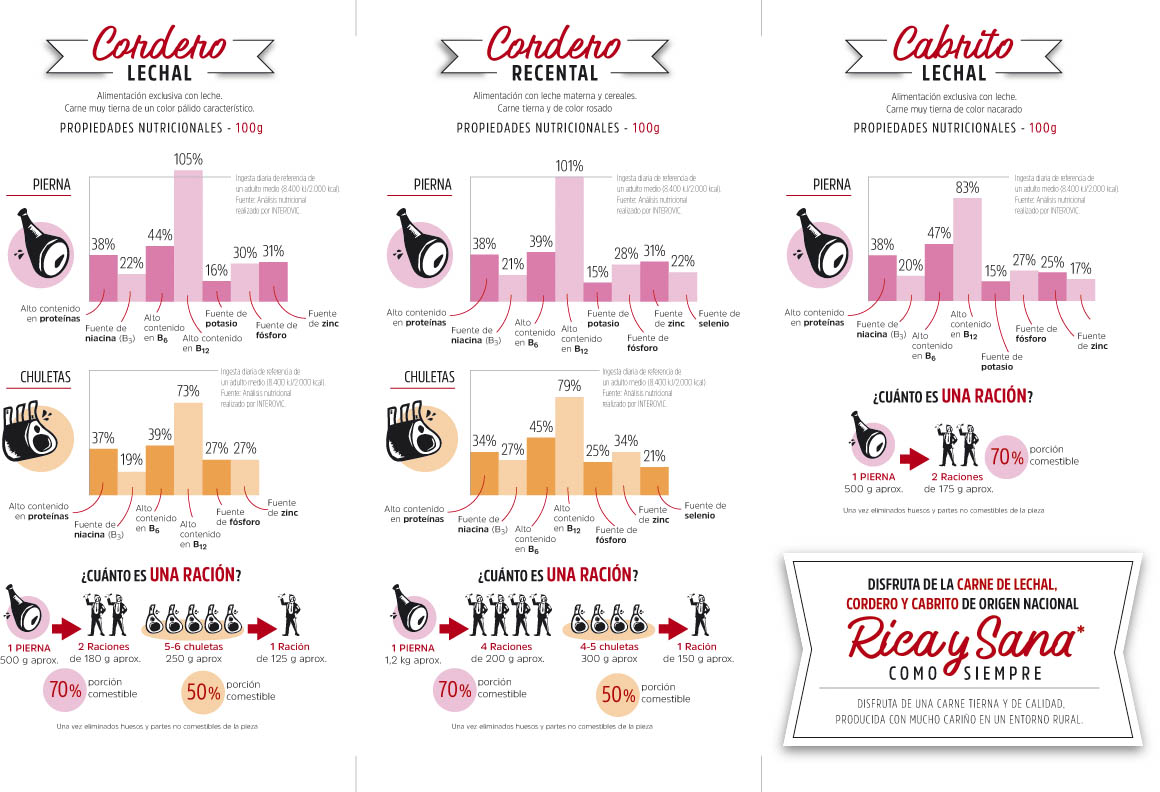 La Organización Interprofesional Agroalimentaria del Ovino y Caprino (INTEROVIC) ha encargado a centros de Investigación de las Universidades de Zaragoza y de Extremadura un completo estudio a través del cual han analizado pormenorizadamente la composición nutricional de la carne de lechal, cordero y cabrito con resultados muy positivos acerca de las propiedades saludables de esta carne.