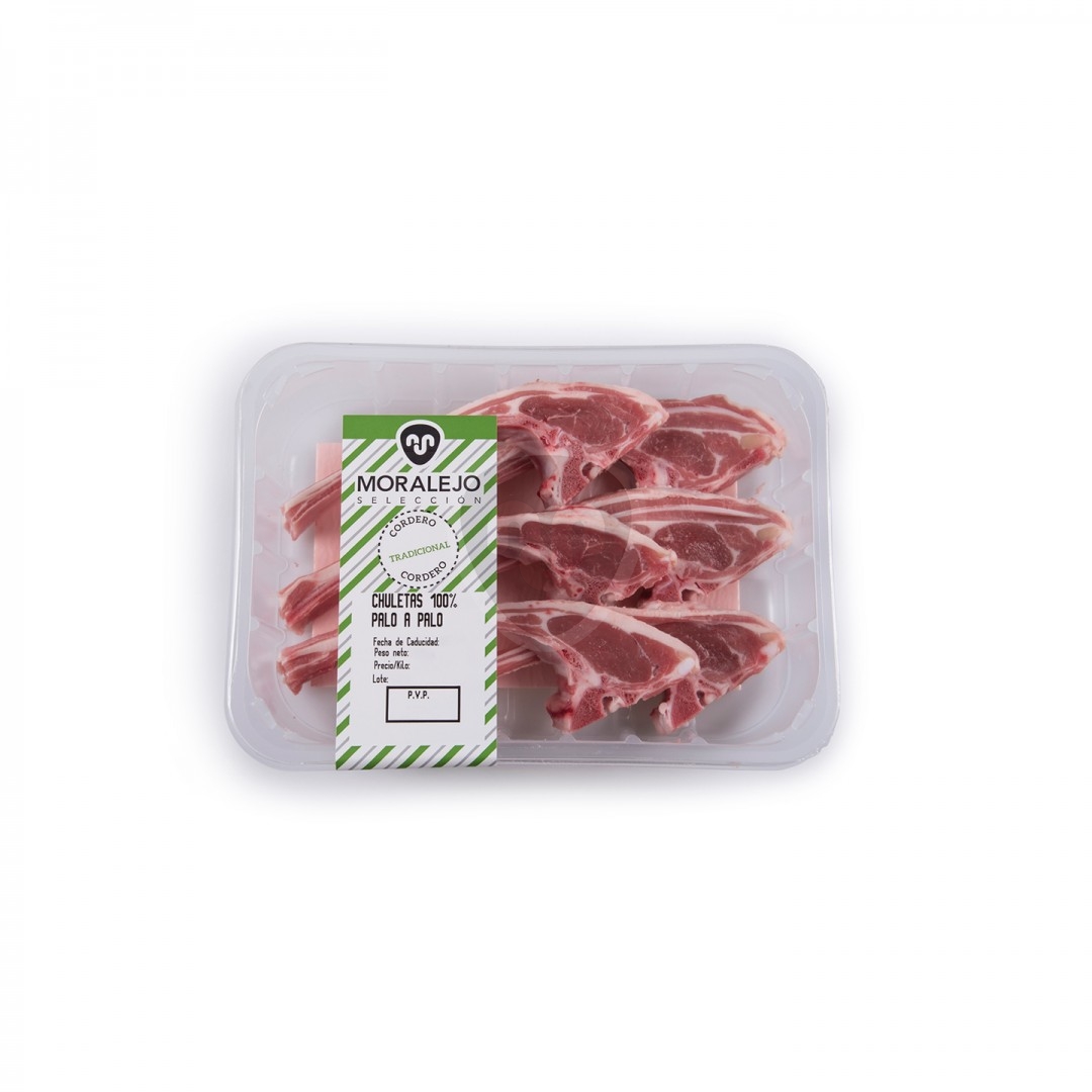 Chuletas de palo de cordero cortadas una a una respetando el palo.