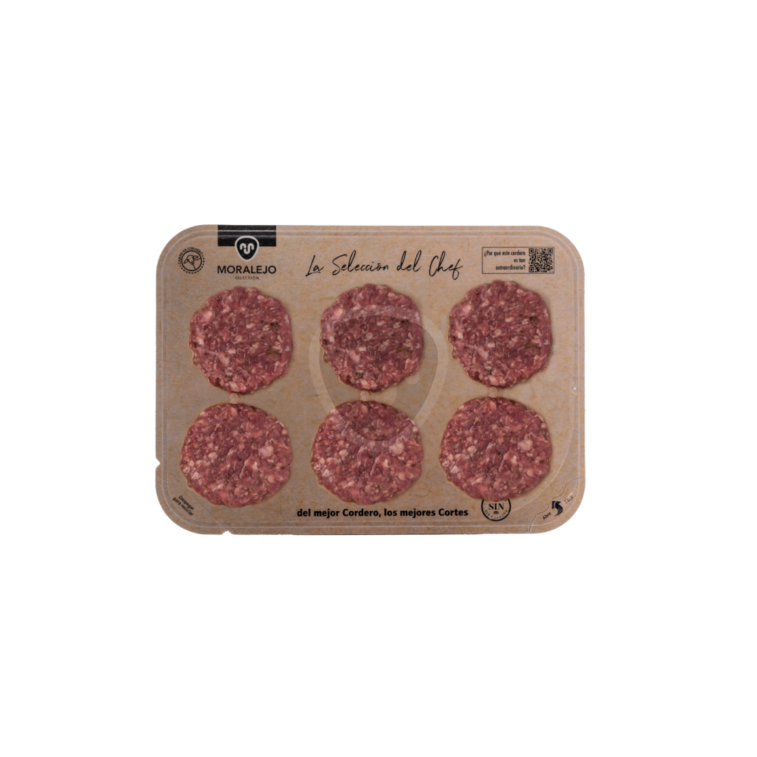 Mini hamburguesa de cordero envasada en formato flat skin.