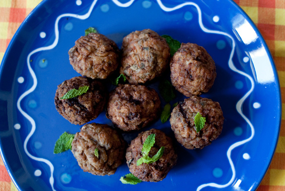 - Servir calientes y con menta picada en grueso por encima. Lo mejor es tomar las albóndigas recién fritas, pero si las quieres tener hechas de antes, se pueden recalentar en el horno. El truco entonces es freírlas poco, para que se acaben de hacer allí.