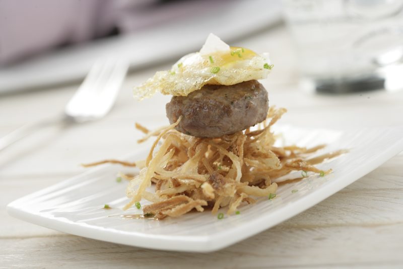 - Cebolla frita crujiente.